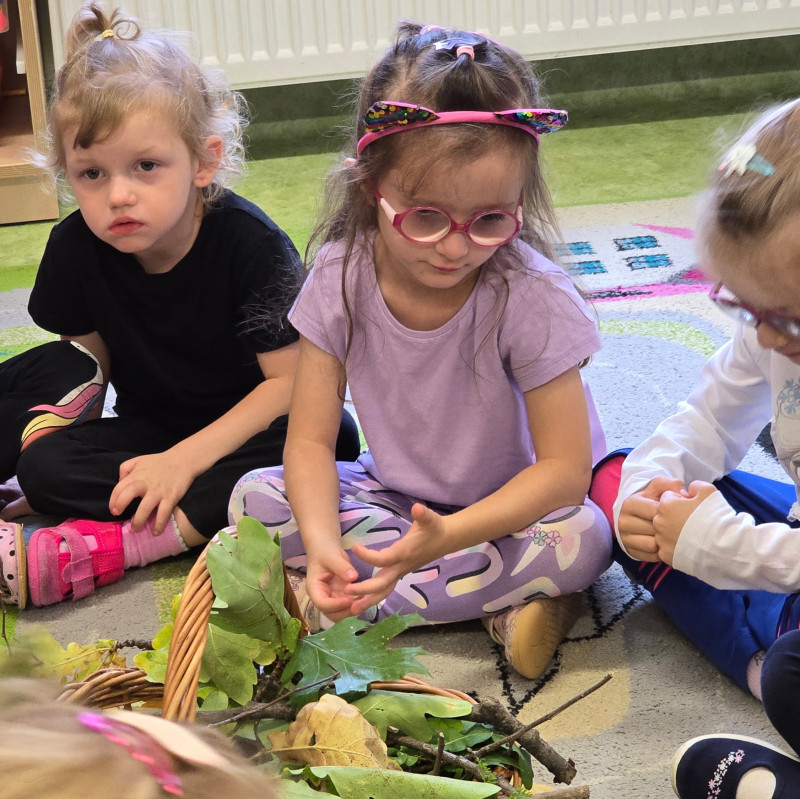 • rozpoznawanie darów jesieni: kasztany, żołędzie, liście, dynie,