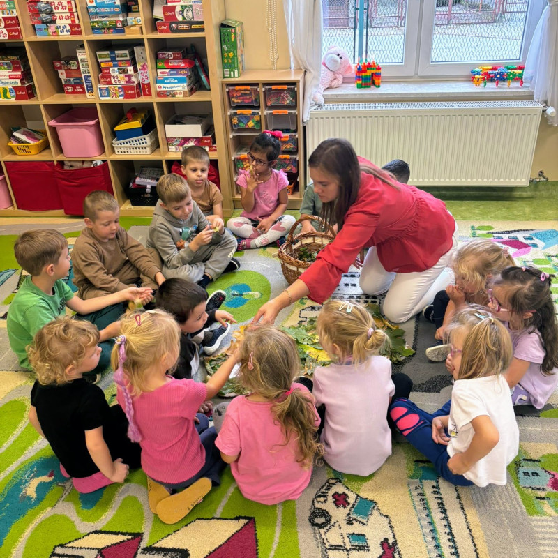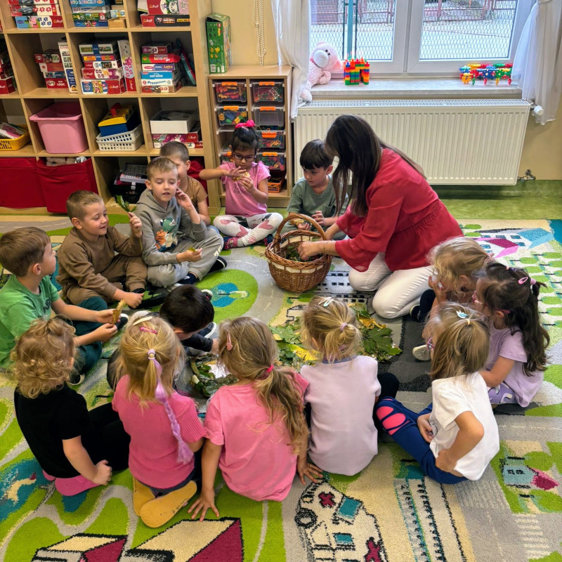 22 września 2025 r. w naszym przedszkolu odbyła się wyjątkowa lekcja otwarta dla nauczycieli, poświęcona tematyce jesieni. Dzieci z grupy „Maluszków” z ogromnym zaangażowaniem uczestniczyły w zajęciach, podczas których poznawały charakterystyczne cechy tej pory roku.